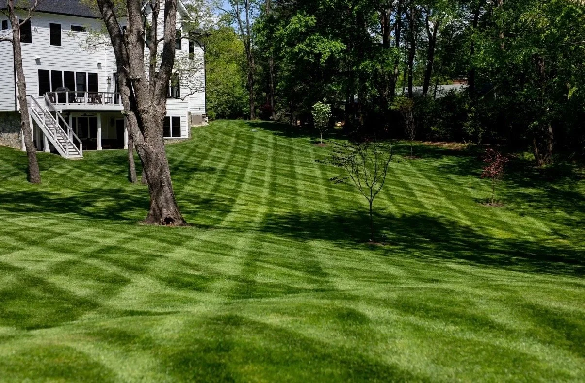 We mow at the proper height for healthy grass growth, alternating patterns to prevent rutting and promote thick turf.